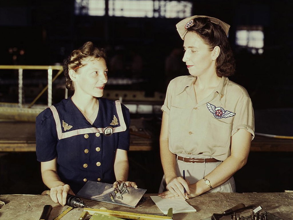 Вирджиния Янг (справа), руководитель ремонтного цеха на военно-морской базе в Техасе. Ее муж стал одной из первых жертв США во Второй мировой войне. Август 1941 года, фотограф Говард Холлем.