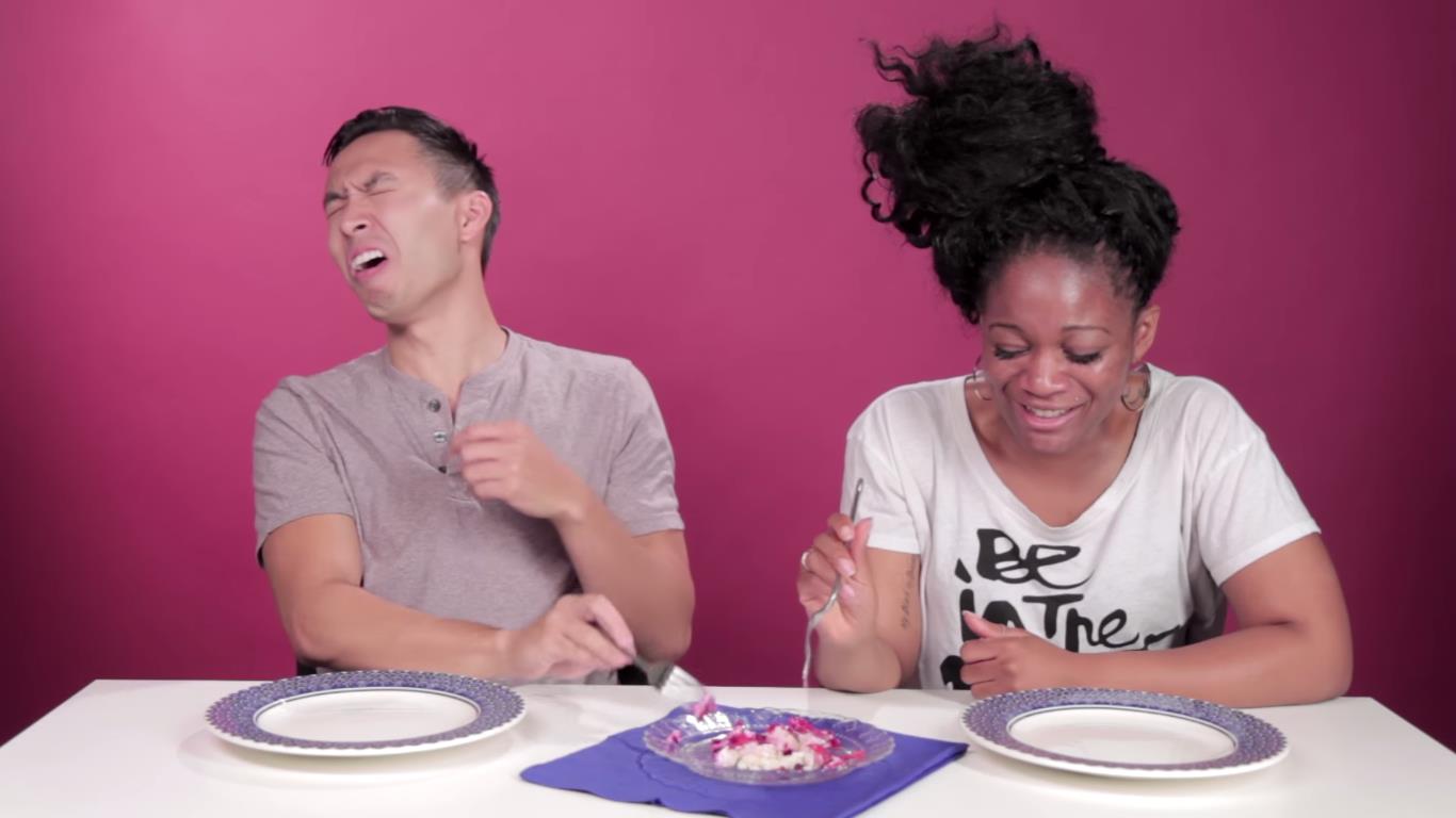 Популярный западный развлекательный портал BuzzFeed устроил для американцев тест-драйв блюд русской и украинской кухни. Нескольким парням и девушкам предложили попробовать на вкус селедку "под шубой", вареную колбасу, соленые помидоры, холодец и сало и описать свои ощущения.