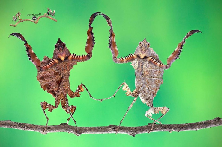 Фотограф Панг Уэй (Pang Way) из Малайзии любит делать снимки с близкого расстояния. Таким образом можно гораздо лучше разглядеть этих существ, которые в обычные дни не привлекли бы нашего внимания. При взгляде на эти кадры кажется, что богомолы не просто живут своей повседневной жизнью, а будто бы позируют фотографу.
