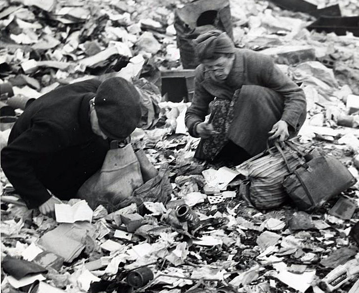 1945 год. Жители Берлина ищут еду на развалинах.