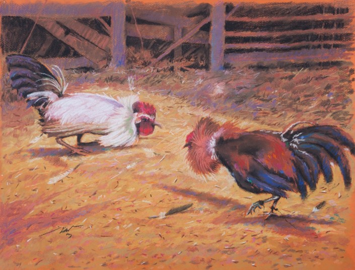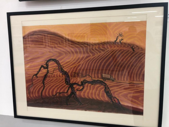 "Этот эксперимент с пастелью и фломастером применяли не многие. Красиво сделана сама композиция, здесь настоящий бархан. Это "Шелковый путь", дорога дружбы, которая идет из Китая. Это еще когда она строилась в  1960-1970 годах", - представил работу Юрий.