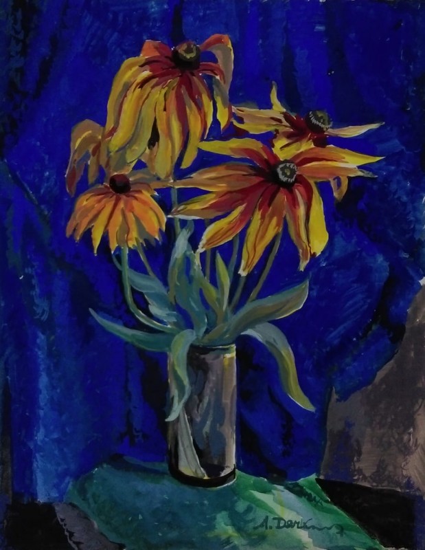 Дячкин нередко ставил эксперименты. Например, рисовал картины с использованием мелков и фломастеров.