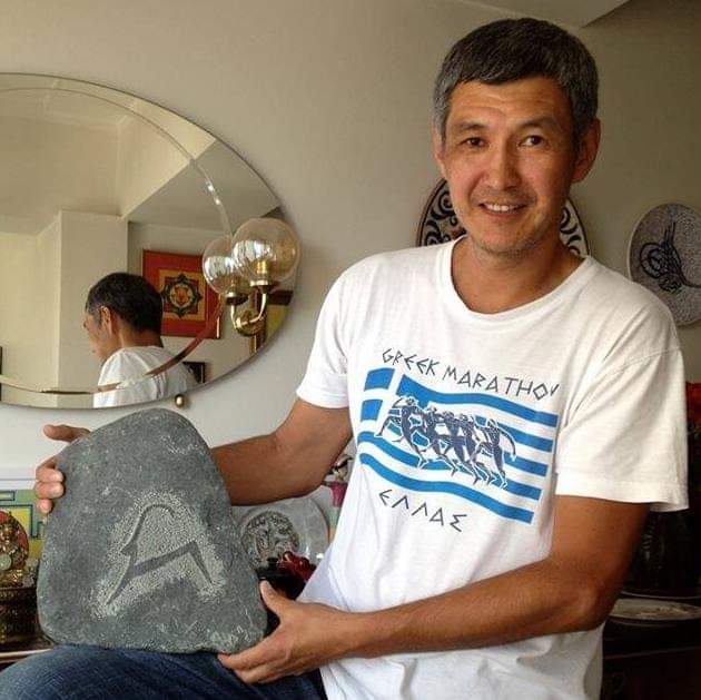Санжар тренер с 30-летним стажем. К тому же на протяжении десяти лет он интересуется историей, культурой и искусством. В частности, делает гравюры на камнях.