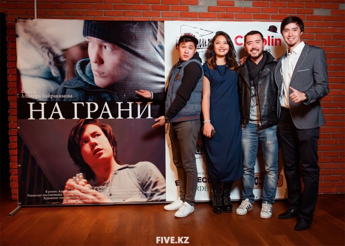 Слева направо: Шарип Серик, Венера Каиржанова, Нурлан Батыров и Алдияр Байракимов на премьере фильма "На грани". © five.kz