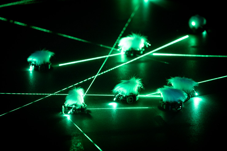 Инсталляция из плюющих лазером зеленых шариков напоминала фильмы о космических войнах.