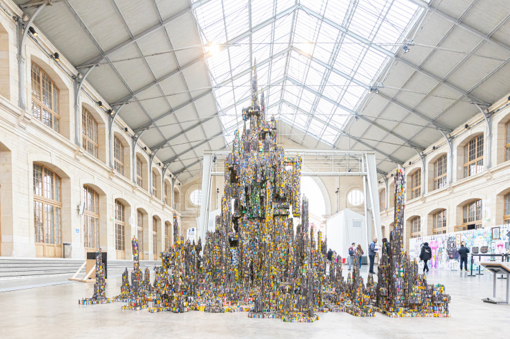 В центре площадки было построено огромное нечто из использованных батареек - как замок из сказки.