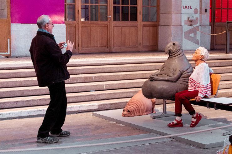 Идея выставки состояла в следующем: представьте, что все люди стали переживать, что человеческая раса исчезнет, роботы и искусственный интеллект заменят ее. По мнению организаторов мероприятия, такой страх подтолкнул бы людей к проведению подобной выставки аккурат перед их исчезновением. И будто через много лет мы - "люди будущего", то есть реальные посетители с билетами в "Центр 104", нашли, наконец, эту выставку в музее, которую нам оставили далекие предки. И вуаля.