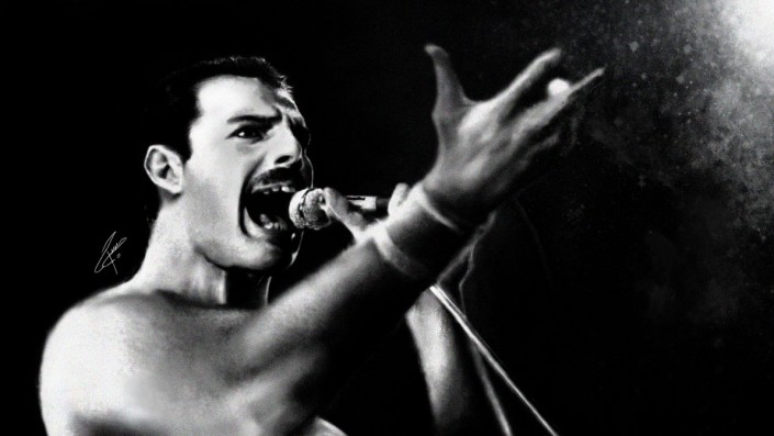 Затем появилась группа The Queen, эмблему которой нарисовал сам Фредди, так как у него были дизайнерские способности. Вокалист Queen обладал голосовым диапазоном в четыре октавы. Диапазона такого уровня хватает, чтобы разбивать фужеры. Кумирами Меркьюри в музыке являлись Джон Леннон и Джими Хендрикс.