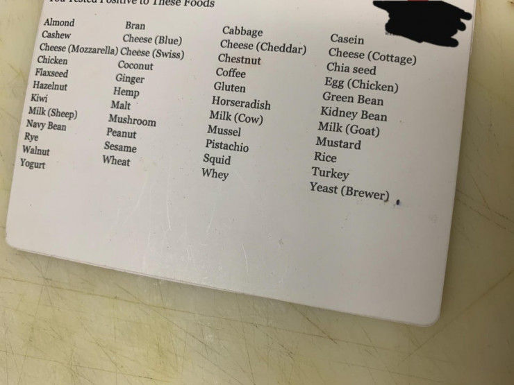 Пользователь Reddit поделился на портале снимком списка аллергий, который предоставила посетительница ресторана официанту заведения.