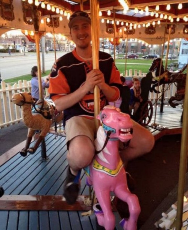 Наш рейс задержали на 12 часов, и мой парень куда-то пропал. Нашла его смотрящим марафон мультиков Pixar среди 5-летних детей.
