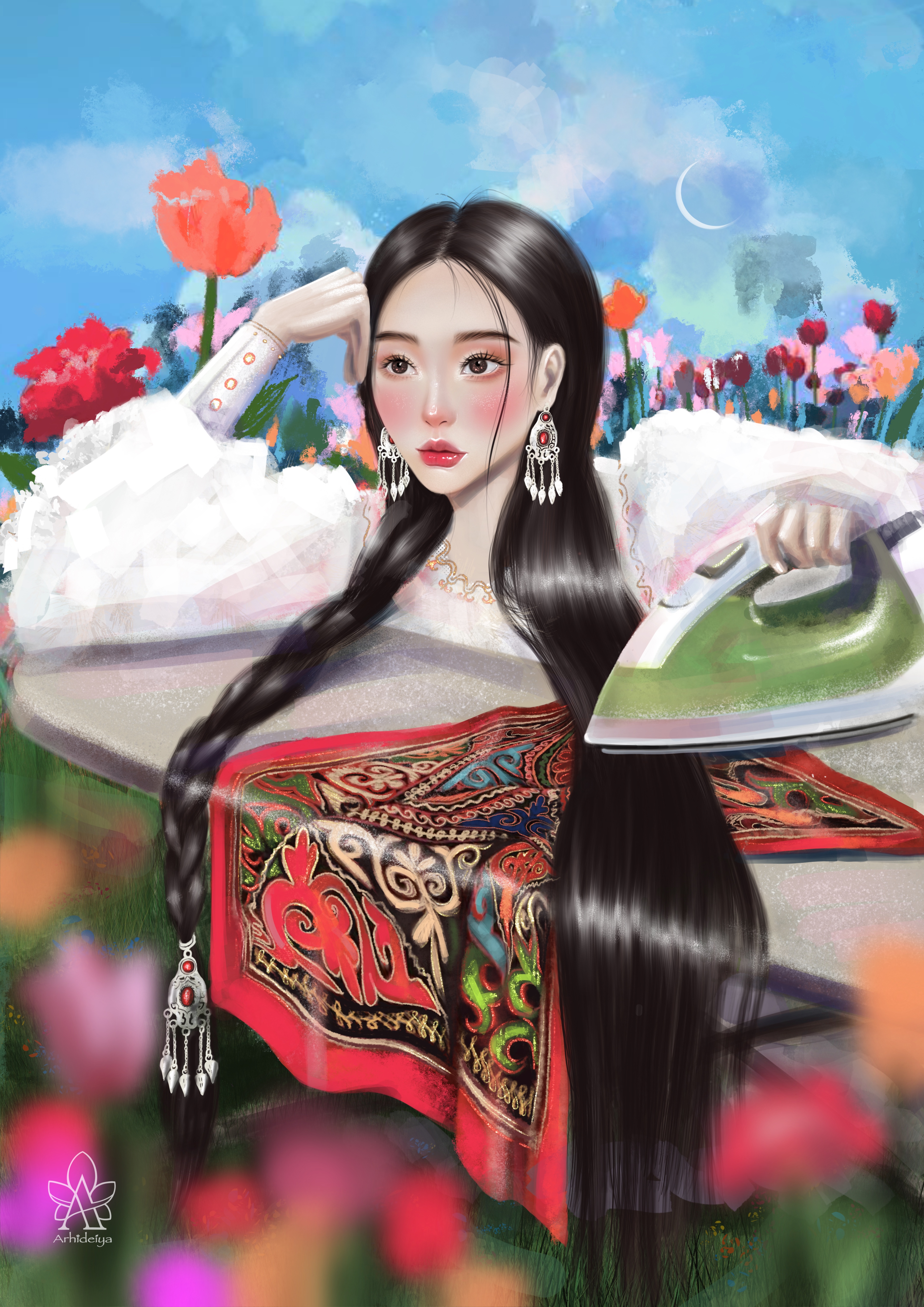 Акниет Жалгаева под псевдонимом Arhideiya нарисовала шесть разных девушек в серии иллюстраций "Әйел/Женщина/Woman".