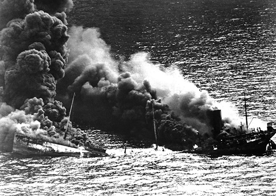 Недалеко от нас шел "Старый большевик". Спикировал на них бомбардировщик, бомба попала на полубак, вспыхнул сильный пожар, а у них в трюмах - взрывчатка. Команда кинулась выбрасывать боезапас, чтобы не взорвался, не дал детонацию. Подошел помочь корвет "Розалис". Вообще, военные корабли действовали бесстрашно, спасали экипажи при очень сильной плотности огня. Второй корвет предложил команде покинуть судно. Когда мы вернулись, узнал, что капитан Афанасьев отказался: не для того, мол, мы такой груз тянули из Бостона! В общем, конвой двинулся дальше без них. А они с пожаром справились и догнали конвой. Англичане не верили своим глазам. По флажной связи флагман конвоя передал, что восхищен мужеством команды", - делился воспоминаниями конвойщик Николай Дитятев.