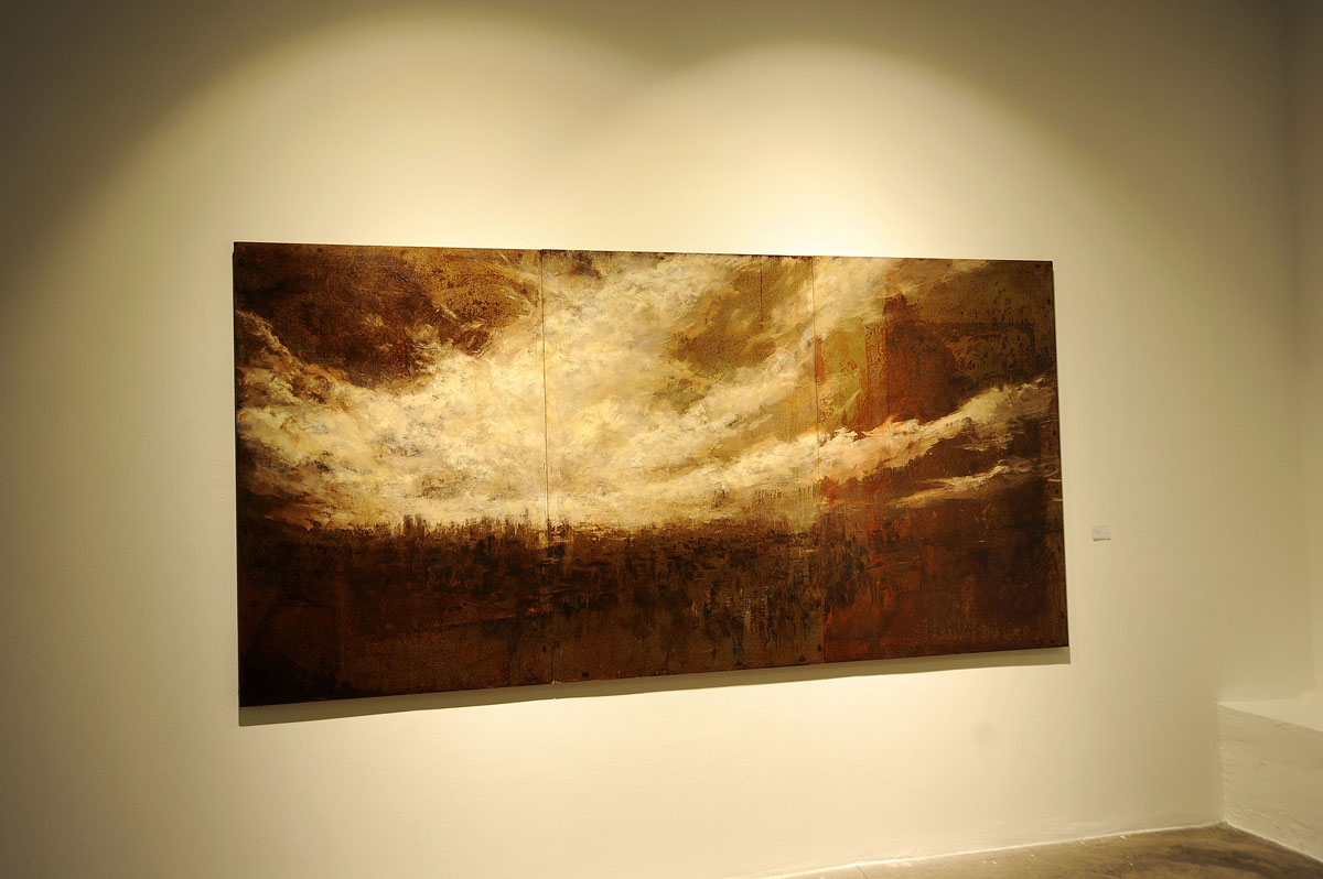 А это роспись маслом по стали. Очень нас всех впечатлила. Издали выглядит как изображение бури, а близко - как обыкновенная ржавчина на металле.