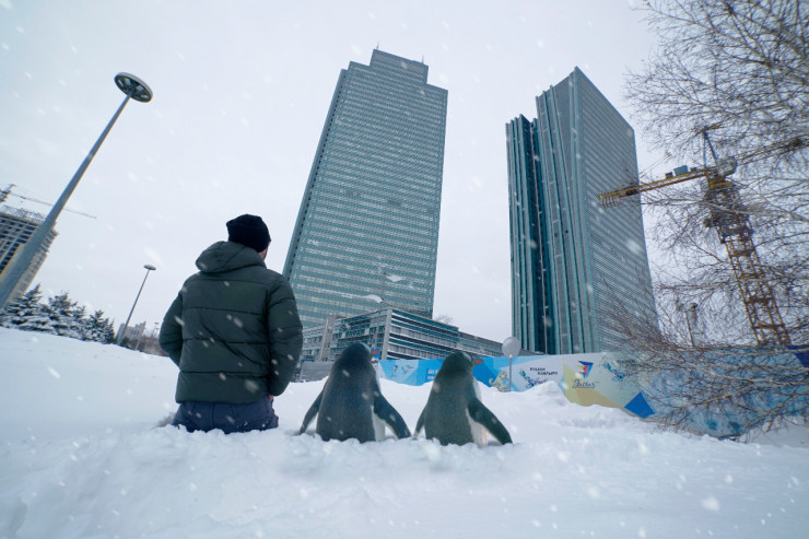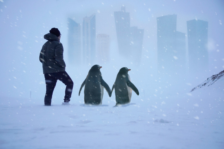 "Я сфотографировал себя в степи, была снежная мгла, ничего не видно. А потом появились пингвины, белый медведь и другие персонажи", - сказал он.
