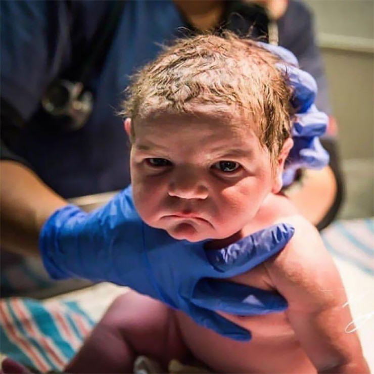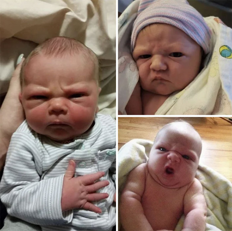 #5 "Моему сыну всего неделя, но морщины на лбу говорят о том, что он 80-летний дед, который засыпает в кресле за просмотром телевизора"