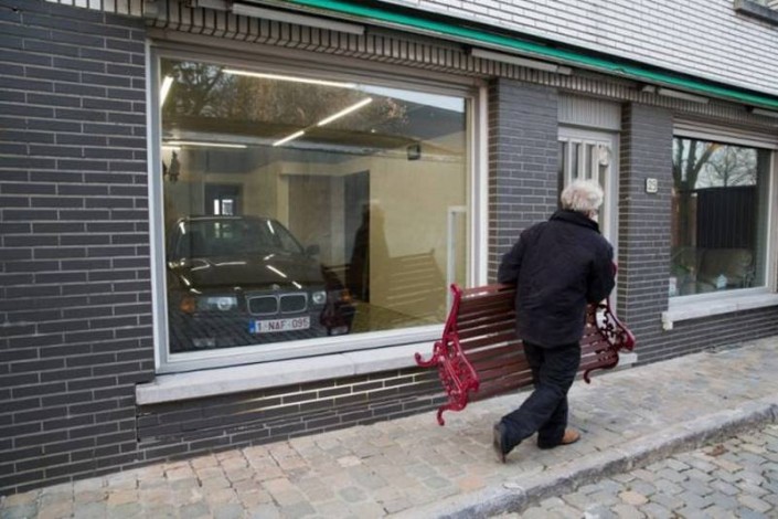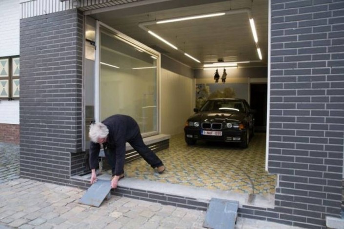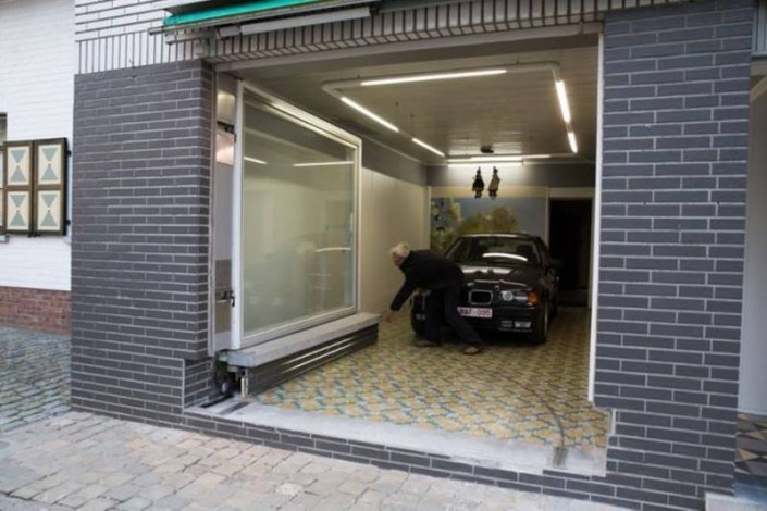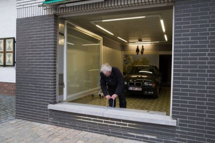 Этот невероятно изобретательный владелец помещения, в котором раньше размещался его магазин, живет в Бельгии. После того, как городские власти отказались выдать ему разрешение на строительство гаражных ворот, мотивируя это законодательным запретом изменять внешний вид фасадов зданий, он не стал отчаиваться.
