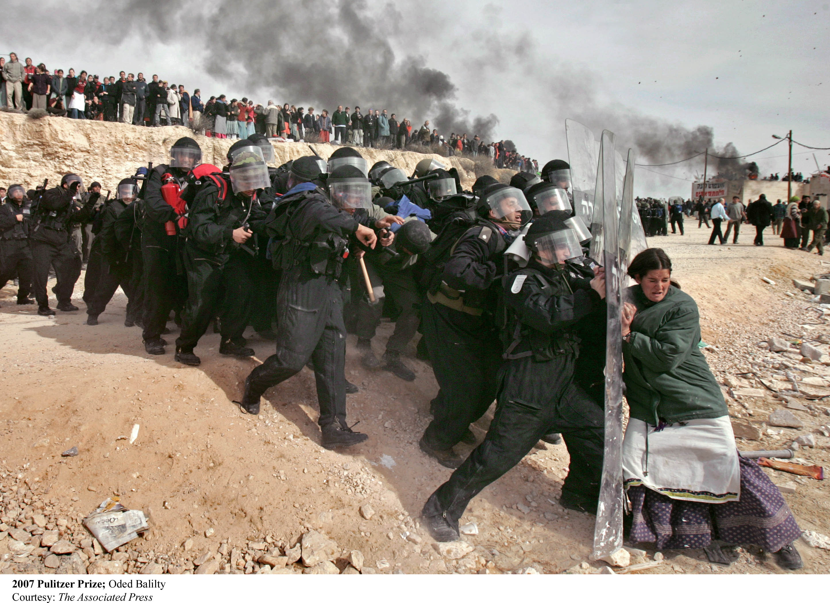 Сотрудник информагентства "Ассошиэйтед Пресс" Одед Балилти стал свидетелем удивительного инцидента, который и запечатлел на своей фотографии. На ней мы видим храбрую еврейку - 16-летнюю Инет Нили, которая в одиночку противостоит полиции, защищая свое право жить именно на этой земле. Фотография облетела мир, но Инет прокомментировала ее как "позор для Государства Израиль и никакое не произведение искусства фотографии".
