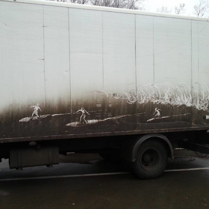 Помните, мы рассказывали вам о художнике, который пишет потрясающие картины, приспособив немытые машины под холсты? Так вот, ряды уникальных творцов, которые умеют нечто большее, чем пресловутые "помой меня", пополнил москвич Никита Голубев. TengriMIX предлагает вам оценить шедевры, созданные на заляпанных грязью "газелях", грузовых фурах и прочих авто.
