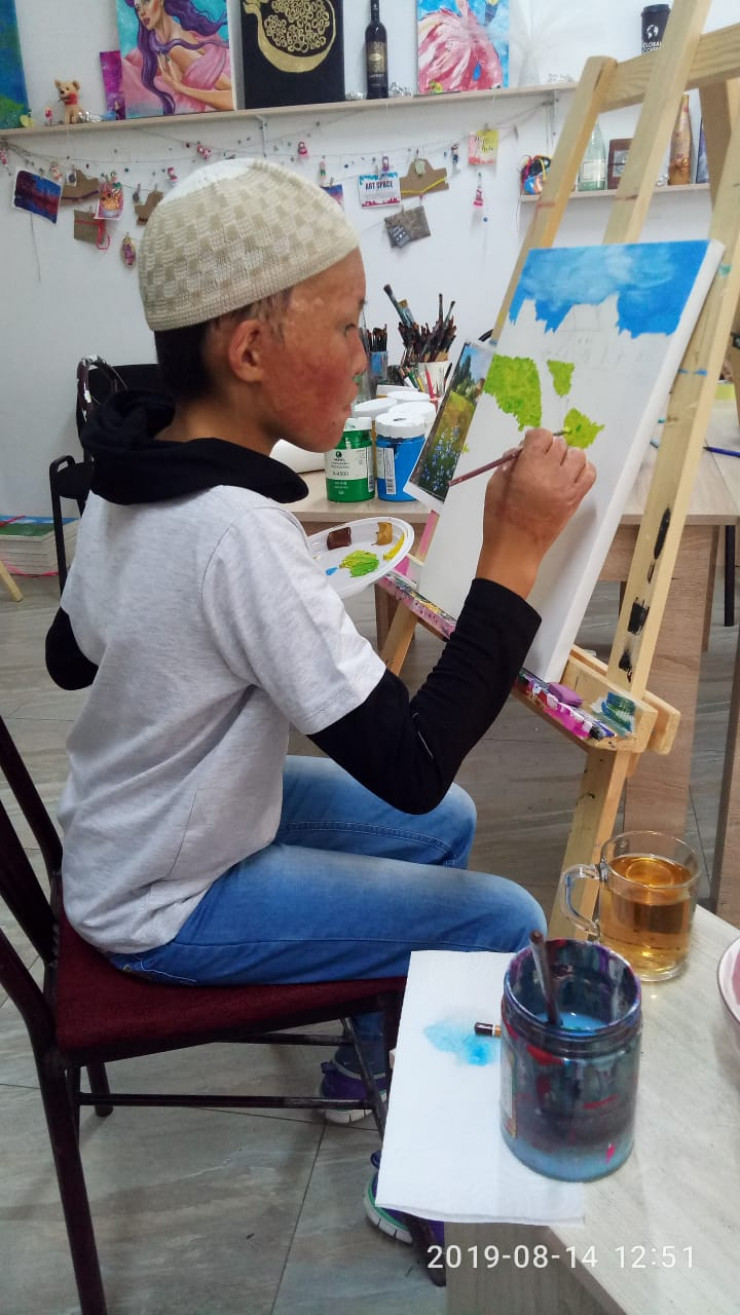 Абдурахман Темирбек - удивительный подросток. Он любит оставаться наедине с собой и рисовать. "Мир красив", - уверенно твердит 13-летний художник, изображая на холсте природу. Житель Шымкента погружается в процесс, это его отвлекает от многочисленных жизненных бед. Теплота его картин вызывает улыбку: осенний лес, отражающийся в зеркале речки, или алые паруса на фоне багряного заката.