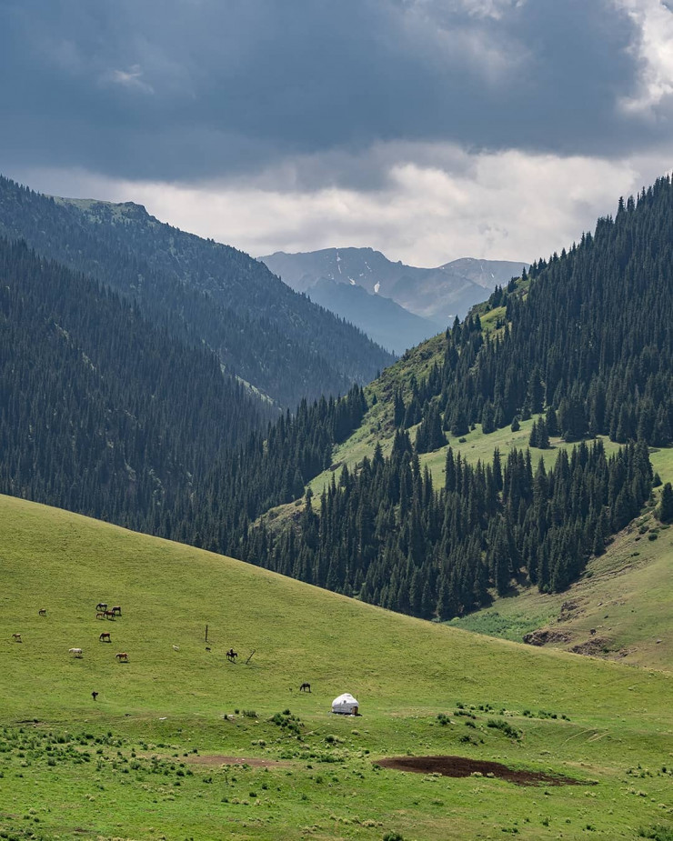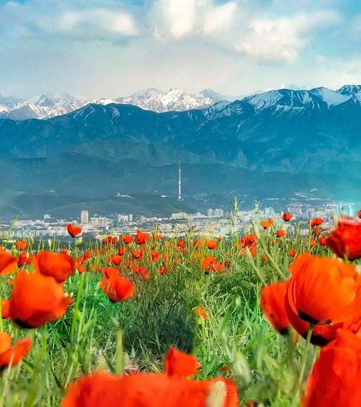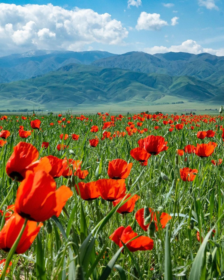 Фотограф также снимал маковые поля в Жамбылской области, Меркенские горы, Боровое, Алаколь, озеро Иссык-Куль и горные ущелья Терскей и Кунгей Алатау.