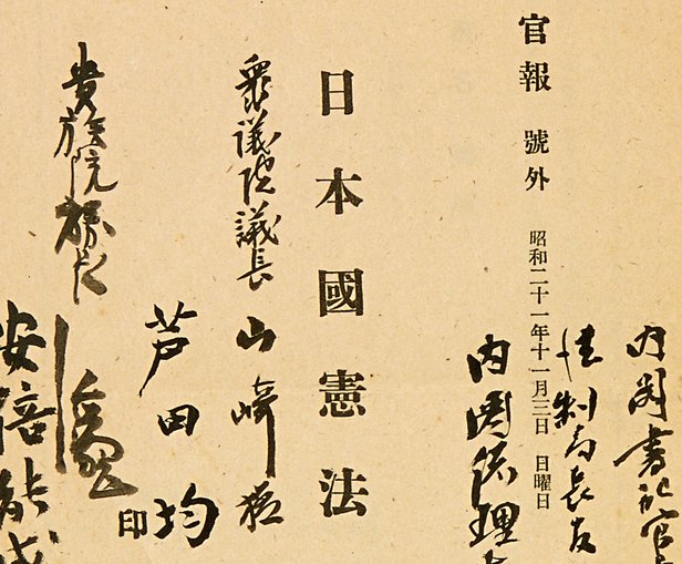 Конституция Японии стала тем документом, где оговаривается отказ Японии от войны. Это произошло после поражения Японии во Второй мировой войне. В конституции сказано, что народ Японии впредь отказывается от войны как способа осуществления государственного суверенитета.