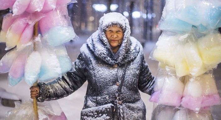 "Этот кадр почти случайный. Снят был зимой прошлого года во время сильной метели в столице, перед самым Новым Годом. У меня было задание сделать фоторепортаж "Метель в Бишкеке". Прогуливаясь по городу, я сделал много интересных кадров, но в конце прогулки решил сделать еще несколько фотографий на бульваре Эркиндик. Там я и увидел бабушку, продающую сладкую вату. Первый снимок получился не очень, потому что снимал ее сзади. Потом обошел и сделал еще пару. И апашка вдруг улыбнулась, так и получился тот самый кадр", - поделился Кадырбеков.