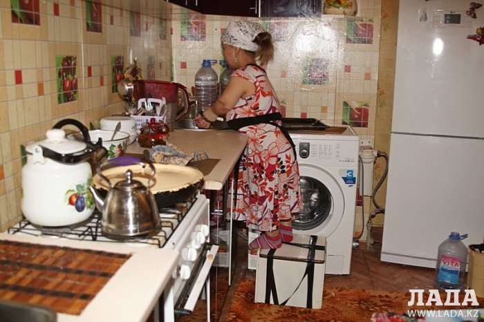 Сайраш - хорошая хозяйка. Она вкусно готовит. Но кухня для женщины ростом 120 сантиметров - слишком большое помещение, и мебель слишком большая. Чтобы помыть посуду или приготовить обед, надо встать на стульчик. "А чтобы дотянуться до верхних полок, надо поставить один стульчик на второй стульчик, - говорит Сайраш.
