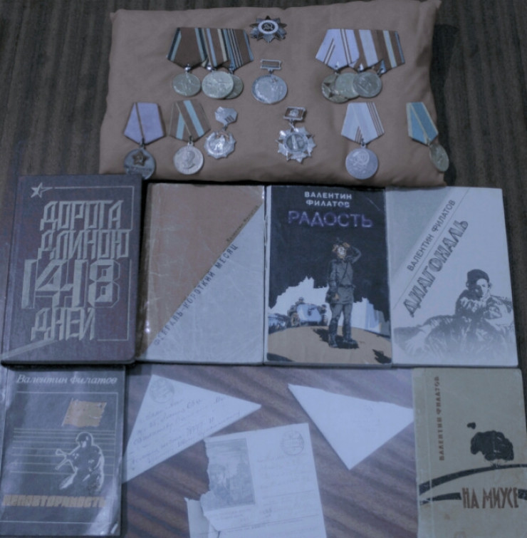 В материале, который нам прислали родные Валентина Филатова, действительно была содержательная информация о жизни и подвигах писателя. Валентин Филатов родился 18 июля 1924 года в  Семипалатинске. Летом 1941 года он окончил 9 классов, а через несколько дней началась война. Он, как и все мальчишки того времени, рвался на фронт, но из-за возраста его не взяли. Тогда Филатов подал заявление во второе Рязанское артиллерийское училище, которое в годы войны было эвакуировано из Рязани в поселок Талгар. "Прошу зачислить меня кандидатом на 1942 год в артиллерийское военное училище. К этому времени я закончу 10 классов", - просил Филатов. И его зачислили. А после восьмимесячного обучения отправили  в самую гущу событий. Так, в июле 1943 года он стал участником грандиозной битвы на Миус-фронте. В жаркой схватке с врагом Валентин был тяжело ранен.