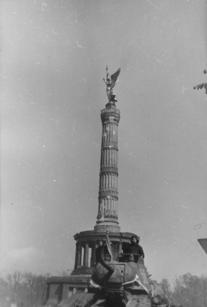 Советский танк Т-34 у колонны Победы (Siegessäule) в парке Тиргартен в Берлине.