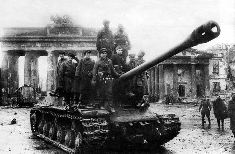 Танк ИС-2 7-й гвардейской тяжелой танковой бригады у Бранденбургских ворот.