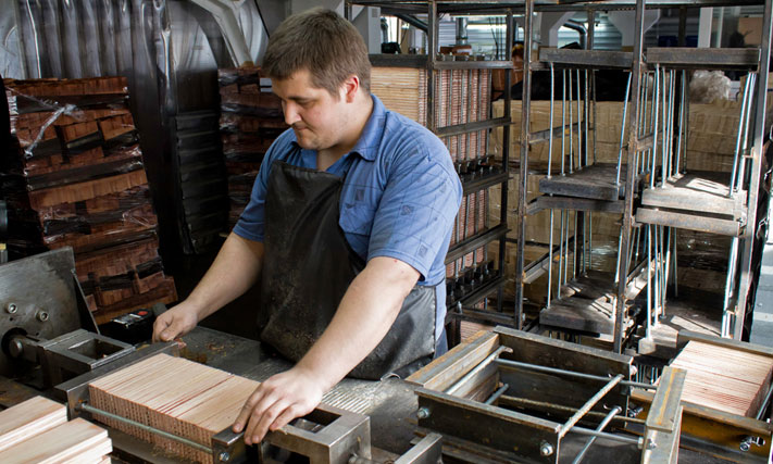 По прошествии этого времени блоки разбирают, укладывают в тележки с указанием всех дальнейших параметров и отправляют на следующий станок, который разделит их на отдельные карандаши.