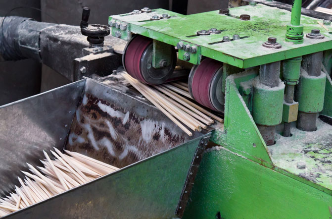 Чтобы уменьшить количество отходов, на предприятии ищут разные способы увеличения глубины переработки древесины. Один из таких способов - расширение ассортимента выпускаемой продукции. Так, из дощечки, которая не годится для производства карандаша, к лету планируют наладить выпуск деревянных пазлов-раскрасок для детей и средств от моли. Что-то идет на производство коротких карандашей, как для магазинов "IKEA", а часть - на производство вот таких деревянных шампуров: