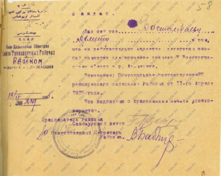 Попробуем найти в документальных раритетах того периода, хранящихся в Центральном государственном архиве Министерства культуры и спорта Республики Казахстан, ответы на вопрос, почему это знаменательное событие состоялось именно в апреле 1925 года?