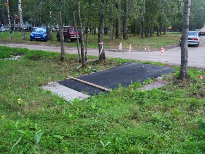 6. Жилой двор. Стульчики оберегают вход в подъезд от наглых водителей.
