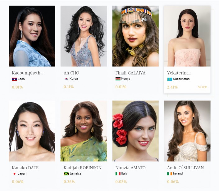 Для этого зайдите в браузере на сайт "Мисс Мира" missworld.com. Зарегистрируйтесь, используя ваш e-mail или Facebook-аккаунт. Зайдите в раздел голосования Vote 2018 найдите Екатерину Дворецкую и нажмите кнопочку "vote" в правом углу.