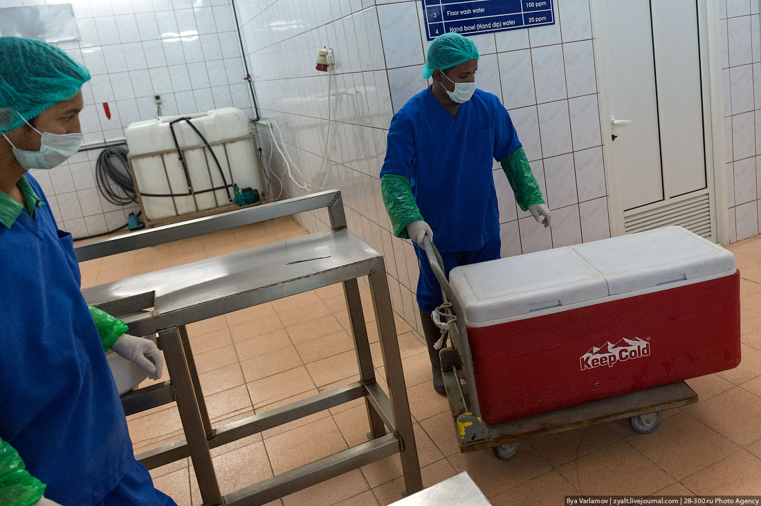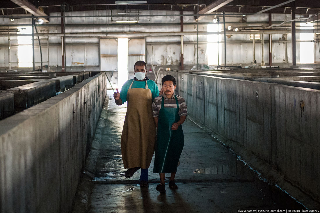 Здесь рыбу промывают, отбирают на размножение (и тогда вы возвращаетесь к первому этапу) или на мясо и икру.