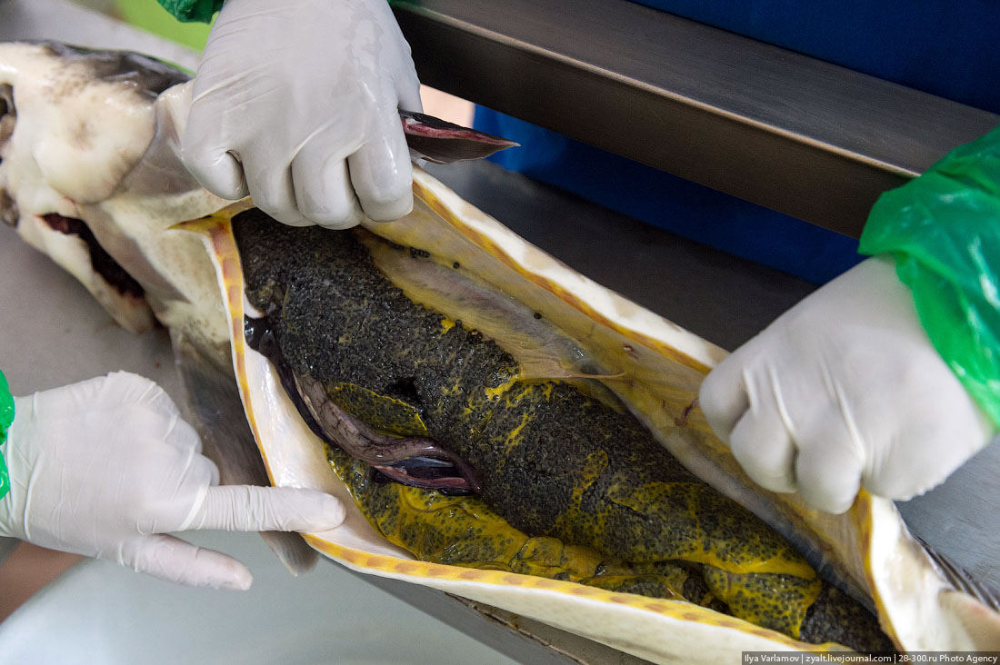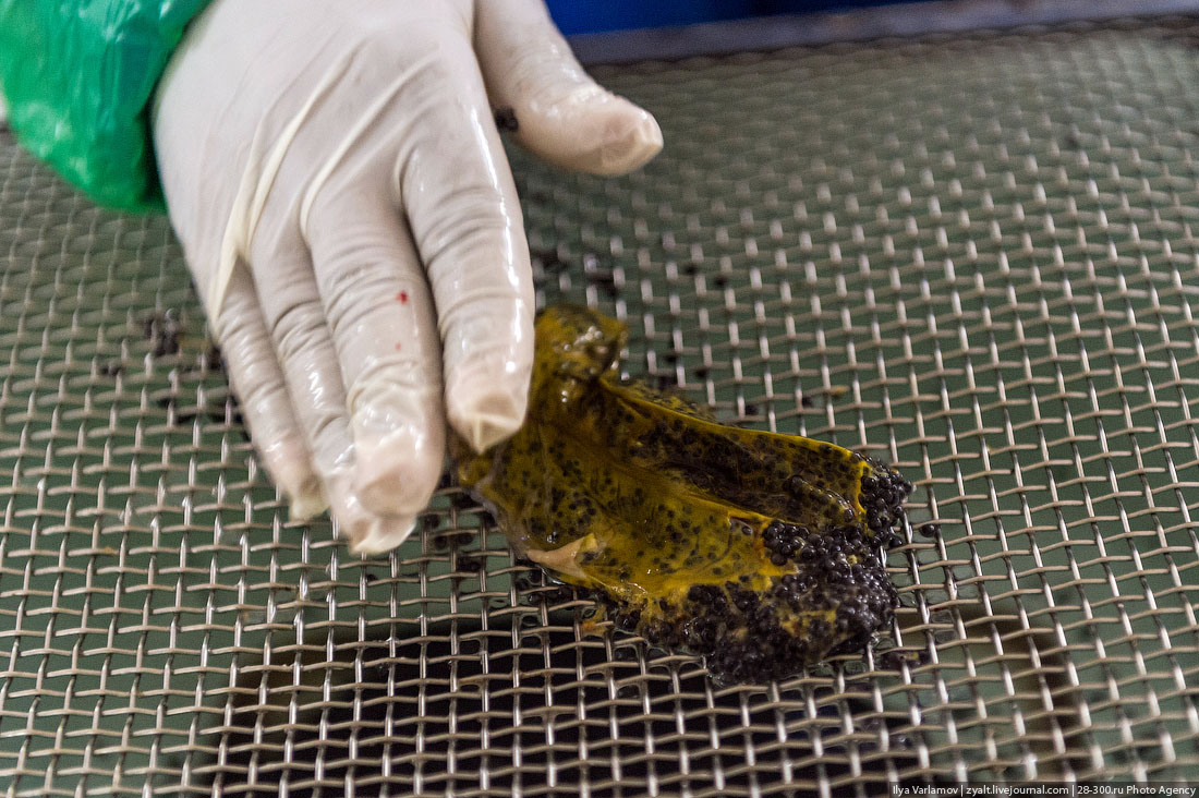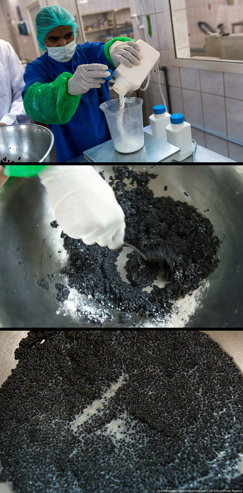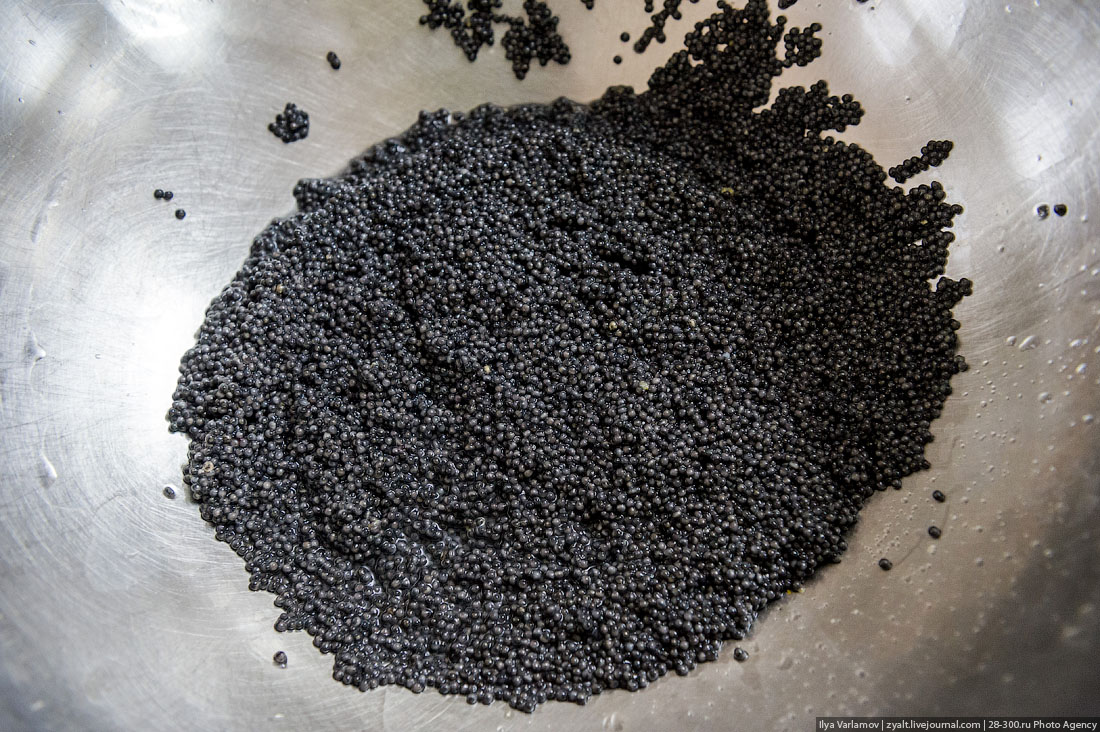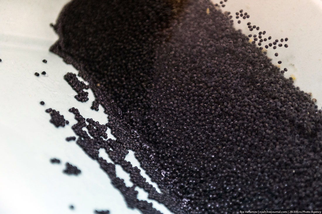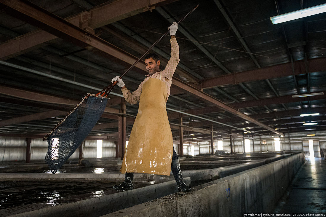 Этап третий: здесь рыба живет до своей смерти. Из нее уже можно брать икру. Икру получают круглый год. Стадо осматривают раз 3-4 месяца, за это время она становится из серой черной.
