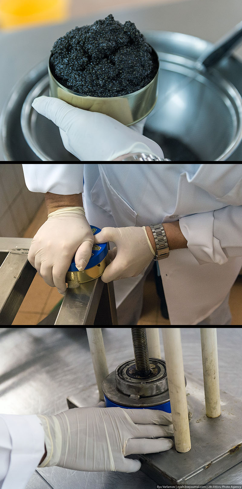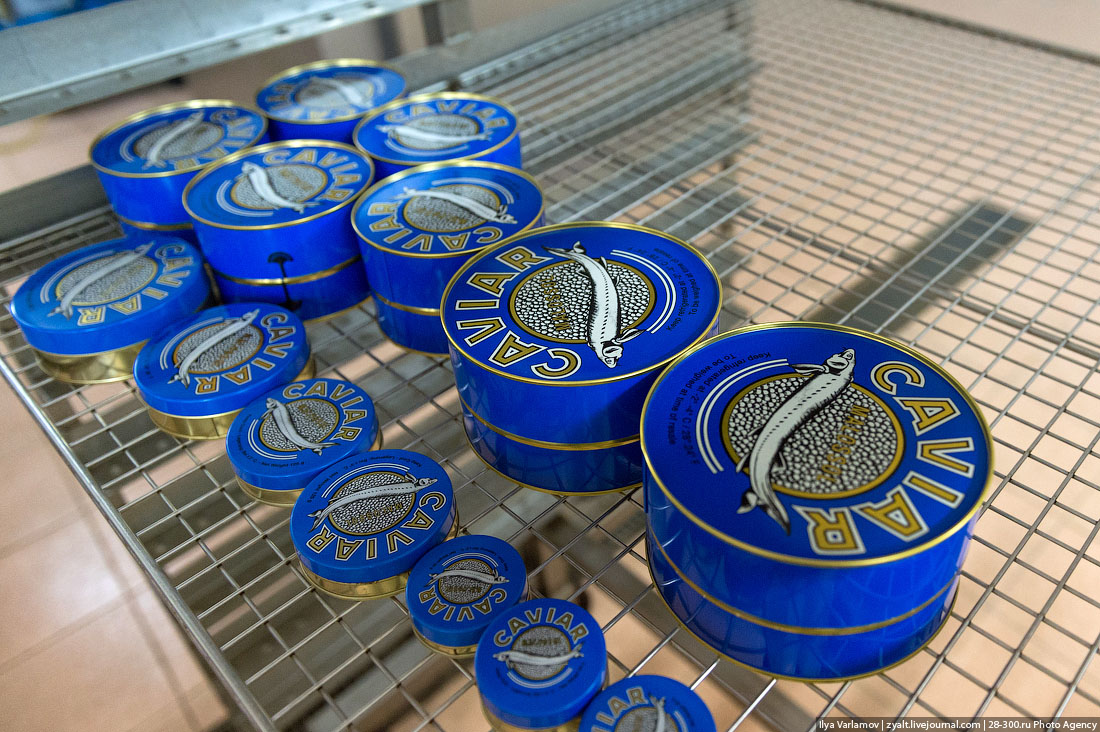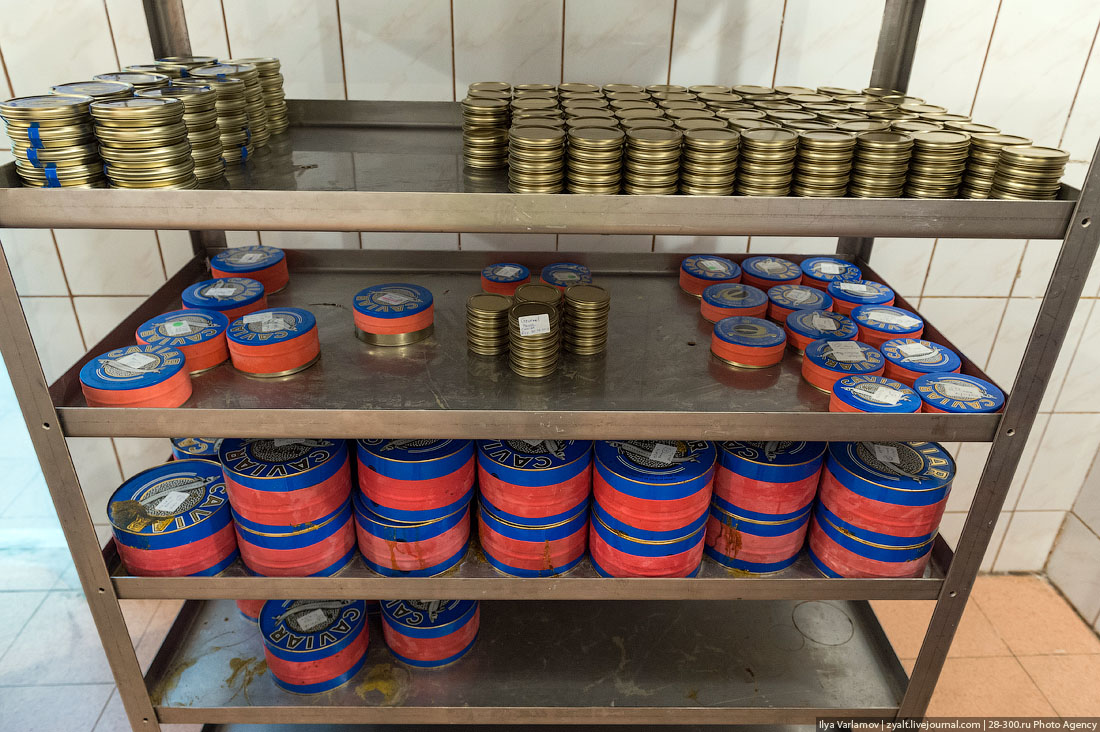 Это все техническая упаковка. Потом из этих банок икру достают и расфасовывают уже в баночки для магазинов.