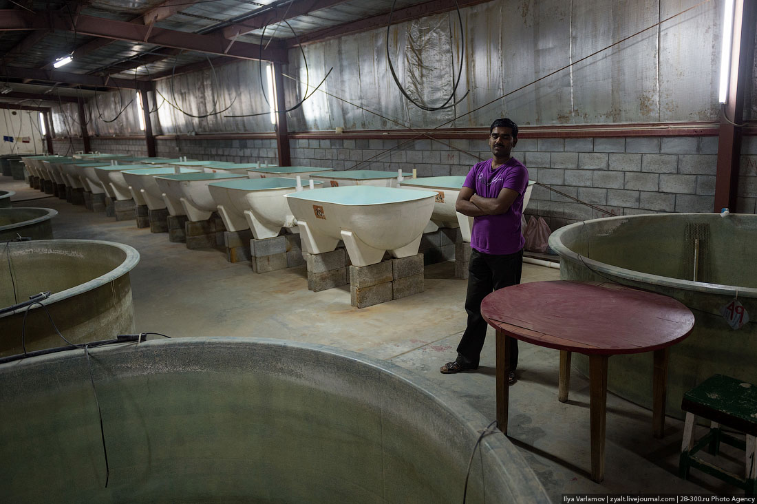 Во время путешествия по Саудовской Аравии я наткнулся на настоящий клад! В Даммаме находится осетровая ферма, руководит которой россиянин Юрий Александрович Киташин. Он ее создал вместе со своим сыном. Ферма уникальна тем, что находится прямо в пустыне, вода берется из скважин, прогоняется по бетонным бассейнам несколько раз и потом сливается в пустыню.