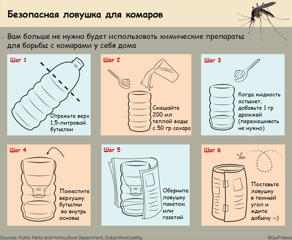 Это, наверное, один из самых популярных (и самых спорных, исходя из разных результатов :)) рецептов борьбы с комарами "своими руками", который можно найти в Сети, сообщает портал Лайфхакер. Кроме того, с недавних пор его используют не только в домашних условиях, но и в общественных местах. В прошлом году муниципалитет Дубаи решил заменить химические препараты от комаров экологически безопасным аналогом, который можно сделать самостоятельно. И даже подготовил для этого понятную схему.