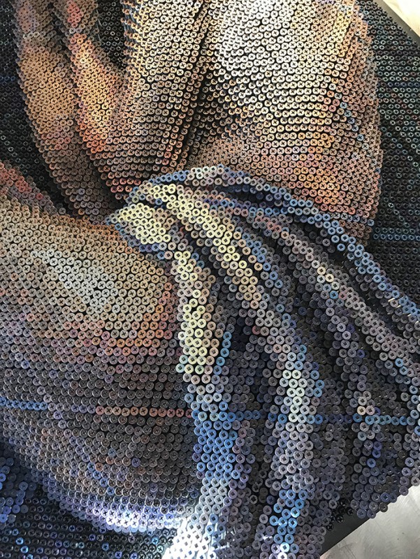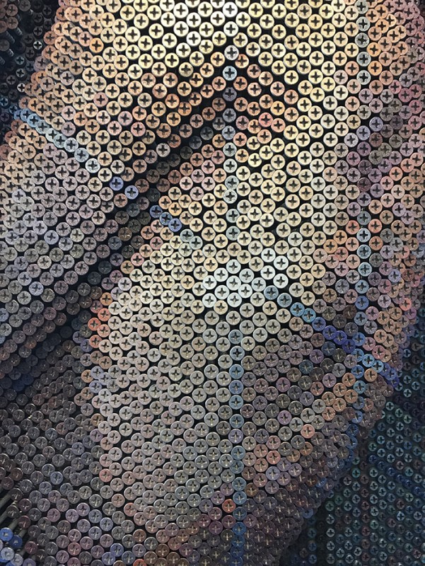 Произведение Макли - наполовину живопись, наполовину скульптура, в которых смешались баланс, гармония и хаос. Звучит непонятно, но взглянув на фотографии, вы все поймете. Брюс использовал более чем 20 тысяч саморезов и шурупов, которые закрепил на сосновой доске на разной глубине, что создало 3D-эффект в его картине. Художник потратил сотни часов, настраивая саморезы и шурупы на нужных уровнях, чтобы добиться желаемого результата.