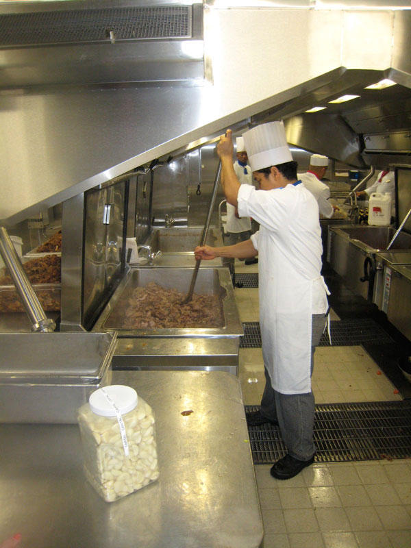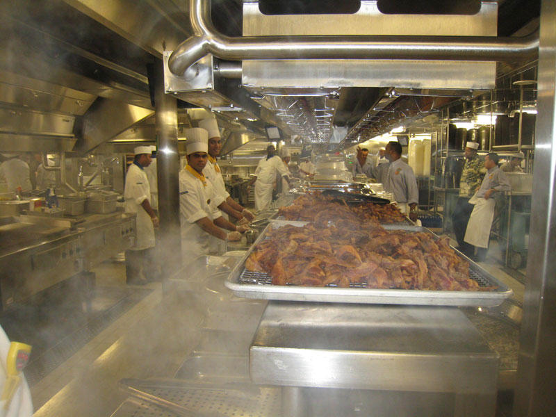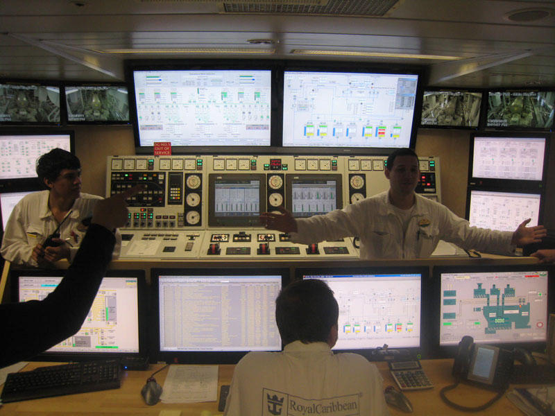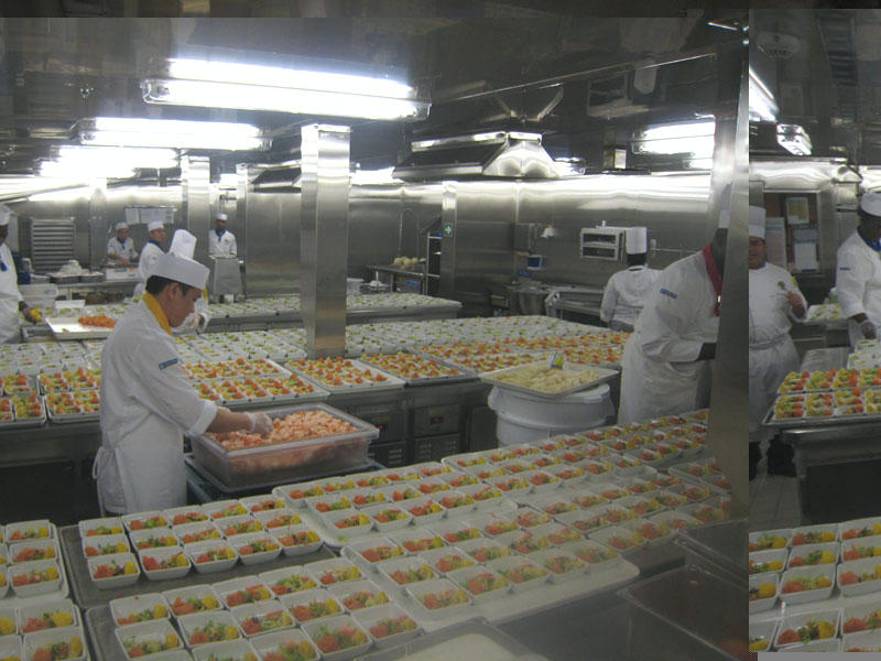 На лайнере проводятся экскурсии, во время которых можно заглянуть "за кулисы" круизной жизни. Этой возможностью и воспользовался один из пассажиров, опубликовавший на популярном ресурсе Imgur внушительный фото-отчет о своем опыте. Представляем вам подборку показавшихся нам наиболее интересными фотографий тех зон лайнера, которые обычно скрыты от глаз гостей. Однако на их примере очень хорошо заметны буквально промышленные масштабы всего необходимого для обеспечения жизнедеятельности такого "плавучего города".