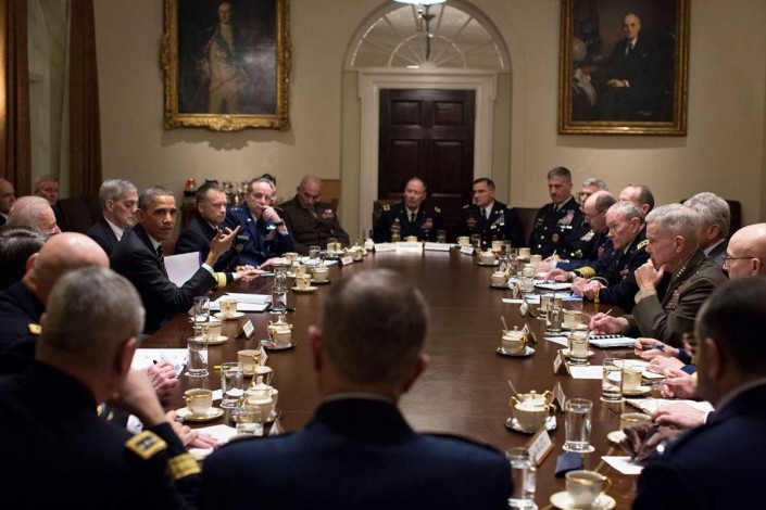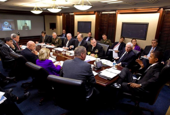 Здесь президент проводит встречи с министрами. Подобные заседания редко проводятся в Белом доме. Президент всегда сидит посреди стола.