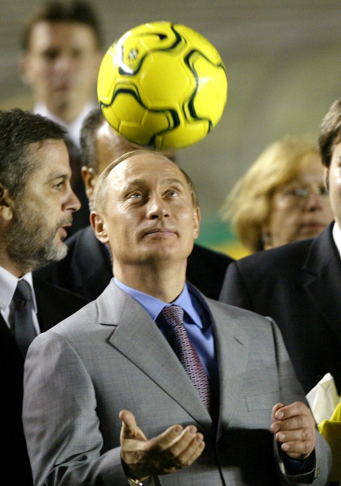 Путин смотрит на мяч и вспоминает свое беззаботное детство.