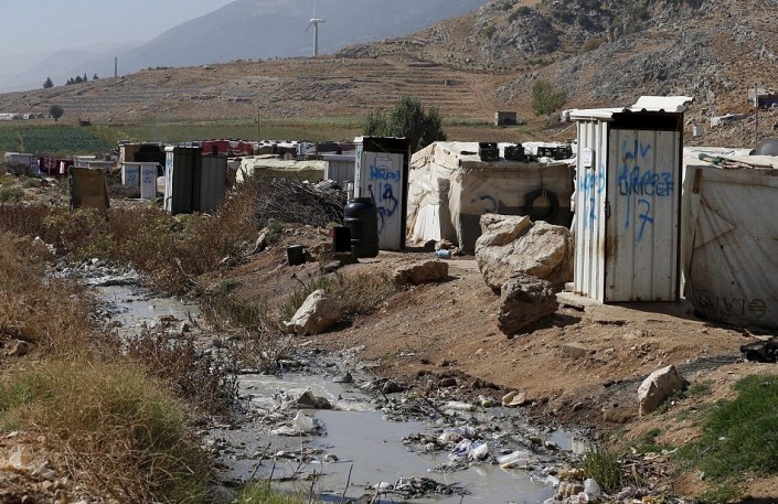Туалеты рядом с палатками в сирийском лагере беженцев в Баальбеке (Ливан).