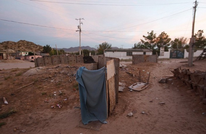 Ямный туалет в бедном квартале в городе Сьюдад-Хуарес (Мексика)