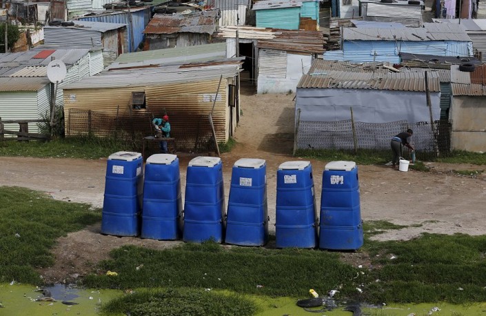 Временные туалеты в одном из районов Кейптауна (Южная Африка).