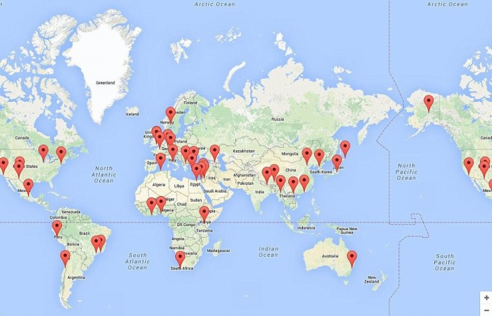 Карта расположения 45 самых мрачных и гламурных туалетов в мире. © Google Maps