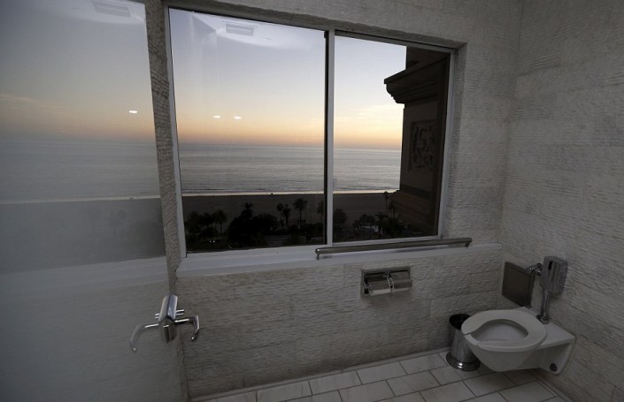 Туалет с видом на Тихий океан в отеле в Санта-Монике (штат Калифорния, США)