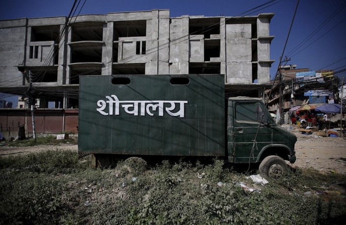 Передвижной туалет на дороге в Катманду (Непал).